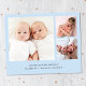 Minimal budgetvänlig pastellblå tvillingpojkar fotokollage födelseannons med deras foto, namn, ankomst datum och födelsetal i enkel, modern typografi. På baksidan, lägg till tre ytterligare foton och ditt "välkommen av"-meddelande.