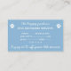 En minimalistisk och snyggt blå och vit hund- och affärslojalitet för djuromsorga tjänster slår kort. På en dammig blå bakgrund innehåller utformningen två vita tassavtryck och fem vita hund. Den vita typografiktexten visar lojalitetsfrågor vid Grooming av Business Namn Hund. Anpassa genom att lägga till din affärsinformation på baksidan.