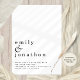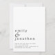Minimalistisk typografi Bröllop Black White Bröllop. Tillgänglig digitalt eller utskriven. Informell contemporary stil med mycket tomt utrymme för minimal elegans! Namn är stort i snyggt gemener med detaljerna i grund. Anpassa texten till dina egna detaljer. Helt anpassade. Om du vill kan du ändra färg för text och/eller bakgrund via Redigera ytterligare.