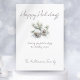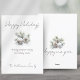 Ett enkelt och elegant julkort. Vacker typsnitt önskar familj och vänner fred och glädje under julen. På baksidan - "Gott nytt år". En minimalistisk akvarellillustration av tallbarr i snö är huvuddragen i detta snygga moderna julkort.