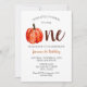 Cute och modern minimalistisk hand målade en liten pumpa första födelsedag, underbar för Fallfödelsedagar. Kristine Lee illustrerar vattenfärgen. Mer information finns på www.kristineleedesigns.com