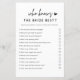 Minimalistiska vem känner bruden bäst bröllopsdusch spelkort