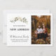 Detta är en elegant minimalistisk grönt och ett Vi har flyttat för blad i guld-olivoljans löv till ett Nytt adress anmälningskort för Flytta