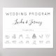 Elegant svart och vit bröllopsprogram tidslinjeskylt med bröllopsikoner och modern typografi. Denna ceremoni programskylt är helt anpassningsbar, så att du kan ändra ikonstorlek och ordning, all text, färger och bakgrund för att bättre passa din bröllopstema!