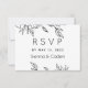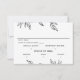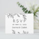 En minimalistisk vit bröllopsinbjudan som innehåller en handdragen konsthandling av ro, knoppar och löv.