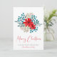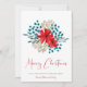 Ett enkelt, elegant och vackert Julhälsningar kort för minimalisterna med en fin vattenfärgad bukett av säsong röda blommor och tealbär och "God jul" i ett rött skript av söt contemporary. Du kan personalisera en jul hälsning under med din familj namn och ditt första namn i ett rödnamnteckning skript.