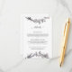 Minimalistiskt Winter Dusty Blue bröllop-informationskort. botanisk utformning av vattenfärg.