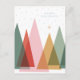 En modern och minimalistisk högtidsdesign med enkla överlappande triangulära julgranar i mjuka pastellfärger. Snöflingor faller försiktigt i bakgrunden och skapar en fridfull julstämning.