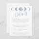 Förhöj den himmelska charmen hos din bröllopsbrevpapper med vårt minimalistiska månfaser himmelsblå kollektion bröllopsföljekort. Denna design har en ren vit bakgrund som låter de himmelska elementen lysa. Centrerat högst upp på kortet finns de fem månfaserna visade i en vacker ljusblå färg, vilket ger en touch av himmelskt skönhet till designen.