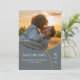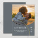 Spara datum med stil med dessa moderna och glamourösa spara-datum-kort. Ditt foto visas bredvid en stor ring mot en dämpad, minimalistisk bakgrund. Detaljerna om ditt bröllopsdatum visas i en formell serif-teckensnitt.