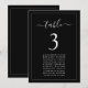 Gör ett djärvt statement på er mottagning med dessa Lyxiga Moderna Minimalistiska Mörka Svarta Placeringskort. Speciellt utformade för par som älskar ett Moody Noir eller Contemporary Black Bröllopstema, har denna design en slående helsvart bakgrund som får den vita bläckkaligrafin att framträda med elegans.