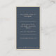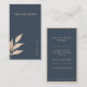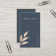 Havsblå bakgrund med ett enda löv i guld på grund lämnat hörn tillsammans med ett minimalistiskt sans serif guld-teckensnitt. Baksidan innehåller all information i samma typsnitt och minimalistiska stil med gyllene tunna gräns. Besök vår butik om du vill ha mer kontorsmateriel och tillbehör i stil