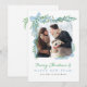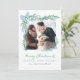Personalisera detta nyckfulla, akvariefärgade blåa band och grönska julkort för foto med ditt eget foto och julhälsning. Välj att få dem tryckta, ta emot som digital nedladdning eller båda!