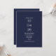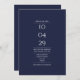 En modern, minimalistisk utformning som innehåller dina speciella datum och bröllop-detaljer som finns i klassisk, chic-typografi på marinblå bakgrund. Med all speciell bröllopsdag om motsatsen, inklusive OSA, boende och ytterligare information. Designad av Thisisnotme©