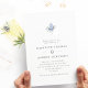 En enkel bröllopsinbjudan med en enda vattenfärgsblå tistelblomma, på en ren vit bakgrund. Anpassa med dina uppgifter i mörk grått.