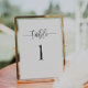 Ett bordnummerkort designat med minimalistisk elegans. Designat med en modern typsnitt som kompletterar din bröllopsdekoration, är dessa kort det perfekta tillskottet till dina receptionsbord. Varje kort har ett distinkt bordnummer, vilket säkerställer att dina gäster enkelt kan hitta sina tilldelade platser. Förbättra den sammanhängande och stilfulla atmosfären på ditt bröllop med dessa vackert tillverkade bordnummerkort som harmonierar med vår sittplatskarta för en sömlös och sofistikerad fest. PPW550 GRACE