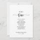 Detta minimalistiska bordsnummer 1-sätesdiagram är perfekt för ett enkelt bröllop. Utformningen har ett vackert svart kalligrafteckensnitt i en vit bakgrund för att försköna evenemanget. Kortet skrivs ut verso (dubbla sided)