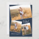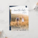 Enkla och moderna inbjudningar från bröllop spara datum med ett stort foto på framsidan, som du byter och tre på baksidan. Söt-typografi-skript. Den här har ett boho-par i fält, men alla grupperingar av foton som ser underbara ut! Mörk, marin blå version