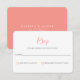 Enkla kort för rosa bröllop OSA av korall. Minimalistisk utformning av stil-funktioner, enkelt skript i korallets rosa på vit bakgrund. Kortets baksida, som visas i solid coral rosa färg, innehåller två malltexter linjer för namn och datum. En del av en samling.