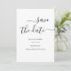 Vi presenterar vårt minimalistkort och trendig bröllop spara datum, med ett svartvitt färg. . Den delikata vita kalligrafin tillför en aning sofistikering till det svarta Spara datumkortet, skapar det som ett perfekt val för ett modernt bröllop firande. Markera den pappra typen enligt önskemål innan du köper.