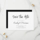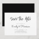 Ett enkelt bröllop spara datum-kort. Anpassa denna minimalistiska svartvita annonseringsdesign för bröllop så att du får dina personuppgifter och meddelanden.