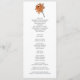 Vårt elegant bröllop-program med en fantastisk orange, krysantthemum-blomma överst, så att du får en aning charm. Det här vackert designade programmet omfattar traditionellt typsnitt för att visa din bröllopsfest och viktig programinformation för din speciella dag. Se till att dina gäster har all information de behöver samtidigt som du med det här fina programmet lägger till en aning sofistikering till din bröllop-dekanter.