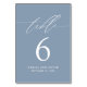Minimalistiskt dammigt blått skriptkort för bordnu bordsnummer