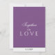 Minimalistisk Dusty Violet gräns på framsidan med pars Monogrammed Initialer i vitt. Bride och Groom Namn i versalsvart typografi. Baksidan har datumtal Bröllop i svart mot vit svart geometrisk rektangel. Tillsammans i Kärlek är skrivet i vitt mot massiv dammig bakgrund. Originaldesign © TamiraZDesigns.