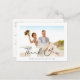 Det här är ett minimalistiskt och modernt bröllop-fotokort som du använder med ett handskrivet skript i eleganten, som skrivs ut på ett bekvämt vykort. Ändra enkelt färg, text och foto. På baksidan finns ett tackmeddelande som du kan anpassa eller lämna tomt om du föredrar att skriva ditt meddelande. Kontakta designern om du vill ha frågor som rör den här designen.