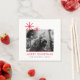 En chic, minimalistisk helgdag Photo Napkins som har en tidlös typografi med "God jul i fet röd text mot en ren, ren vit bakgrund, Anpassa fotot, helgdag och ditt namn för en personlig. Denna moderna, minimalistiska utformning kommer att få er att framträda denna julhelg! Den bild som visas är avsedd som referens och kan ersättas med ett eget foto. Med platshållarbilden visas ett ungt par i klassiskt monokromt gråskala, vilket ger en liten elegans.