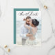 Snyggt Script-kalligrafi enkel, elegant och minimal Bröllop-fotobesparing Datumkortet.En perfekt tropisk stranddestination som rensades för att spara datumkortet med akvatisk grönt eller tropisk grönt färg bakgroud
