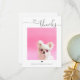 Trendig och enkelt THANKS-tack för att du har ett tvåsidigt kort med handskrivet skrivstil med ett hjärta. Vit rymd ge är en enkel och minimalistisk känsla. Kalligrafi med hjärtaccent. Den omvända sidan är tom för ditt personliga meddelande. Du kan fritt anpassa så mycket du vill eller beställa som du vill. Instagram berömd hund @sparklethetinychi ©Marisu Valencia