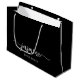 Elegant Clean Black Modern Minimalist Feminine Monogram Namn Namnteckning Gift Bag för skriptAnpassningsbar Personlig. Den här designen som innehåller ditt första namn i ett söt-handskrivet stil-swash svan-teckensnitt namnteckning typografi (eller kalligrafi) med texten "BRIDESMAID" i vitt på svart färg-bakgrund. Dessa är lätta att anpassa. Den här feminina presentsäcken är underbart tillbehör till bröllop, möhippa, till ett bridesmaid-frieri- eller bachelorette-parti, och det är för flickan som kärlek är ett unikt minimalistiskt sak.
