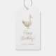 En uppsättning minimalistiska märkre för födelsedagspresent i personlig, med en vattenfärgad illustration av en gås med en party hatt. Rubriken "Grattis på födelsedagen" är ett kursivt teckensnitt med sage grönt. Anpassa med ditt namn eller signering i serieteckensnitt.