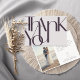 Vänligen uppvisa din hjärtliga uppskattning med dessa enkla 7-tums x 5-tums bröllop-tackkort som innehåller ord, "Tack," i stora lilor av äggplanta på en lätt eggplant-grått-bakgrund. Kortens baksida har en plats för ditt favoritfoto, ett litet hjärta tillsammans med meddelandet "med kärlek från det nya", en valfri meddelanderuta och en platshållare för det nya namnen.