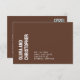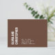 Det platta Spara datum-kortet har en elegant och minimalistisk utformning med en brun bakgrund i mörken, vilket ger en känsla av sofistikering och värme. Vitt, djärvt brev är strategiskt placerat på framsidan och visar de viktigaste detaljerna, som t.ex. parets namn och datumet för händelsen. Typografin är ren och modern och bidrar till det feta estetiska. Konstruktionen undviker avsiktligt dekorationer i extra, vilket gör att kontrasten mellan den vita texten och mörkens bruna bakgrund blir en brännpunkt. Kortets baksida bibehåller den minimalistiska inställningen med fortsatt mörk brun bakgrund. En QR-kod visas på en framträdande plats, vilket gör att mottagarna lätt kan få tillgång till mer information om bröllop eller en länk till en bröllop webbplats. QR-koden ger designen en modern och tekniksundare beröring. Det platta datumkortet Save the Date är tillgängligt i både tryckt och digital form, vilket ger flexibilitet för mottagare som föredrar ett fysiskt kort och de som föredrar en digital version. Den digitala versionen garanterar enkel delning via olika plattformar för online, skapar det lämpligt för mottagarna att spara datumet och få tillgång till ytterligare information. Denna minimalistiska och djärva rädda datumkortsutformning strejkor en balans mellan enkelhet och modernitet, och erbjuder en snyggt och ett anpassade för par att tillkännage sitt kommande bröllop.