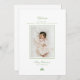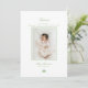 Gratulerar till att din julhelg som är nyfödd med detta minimalistiska födelsetillkännagivande och julkort kommer in i ett. Designat med en ren vit bakgrund har kortet ett baby-foto som är inramat i mjuk pastellbaserad grönt, elegantens kalligrafi för ett varmt välkomstkort och God jul, och ett enkelt 3-tonsformat Julgran för en snygg beröring. En perfekt för spädbarn som föddes i slutet av november eller december. Gender-neutralt och snyggt för moderna familjer.