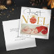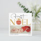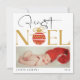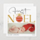 Det här vackra julkortet har ett hjärtslitande foto av ett sött baby i en julhatt och tillkännager sin första jul på ett lekfullt och snyggt sätt. På kortets framsida finns ord "First Noel" med festive ornament och "2024" med fet stil, elegant font, skapar det ett perfekt sätt att hedra minnet av detta speciella tillfälle. Den övergripande utformningen är både tidlös och festlig, perfekt för att dela glädjen hos ett nyfött baby i första julen med nära och kära. Kortets baksida innehåller ett enkelt men hjärtligt budskap som tillönskar alla ett God jul och ett fantastiskt år framöver. Den enkla vita bakgrunden och den svarta texten skapar en ren och sofistikerad känsla, vilket tillför helgdag en aning värme och personlighet.