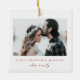 Fira nylingarna första jul tillsammans med vår utsökta "minimalistiska första julfoto" keramiska prydnadsföremål, en verkligt speciell keepsaké. Den här eleganten prydar på ett vackert sätt upp ett omhuldat foto från bröllop, ord "First jul Married" tillsammans med parets namn i ett avslappnad ännu elegant-skript. På baksidan är känslan "Lyckligtvis alltid efter", tillsammans med datumet i bröllop och ett litet hjärta, smakfullt inskriven i ett varmt och inbjudet rött typsnitt, som fångar det varaktiga löftet från kärlek. Detta prydnadsämne är ett perfekt som kompletterar dina helgdag och en varaktig bröllop momento. Beställ nu och gör din första gifta jul till ett minne som i åratal tar hand om komen.