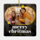 Denna moderna och snyggt julprydnad har en elegant svart bakgrund med en glamorös ovala guld glitter. Perfektens sätt att önska era kära ett God jul och ett Gott nytt år.