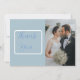 Jag vill uttrycka er tacksamhet i celestial stil med vårt bröllop-kort med ett tack för det minimalistiska Måne-faserna Celestial Blue Collection. Den här designen har en enkel, minimal och skarp estetik, med en ren vit bakgrund som förstärker det berömda temat. Både på kortets framsida och baksida visas foton från bruden och brudgummen, vilket gör att ditt tackbudskap får en personlig beröring. På framsidan av tackkortet står "Tack" i ord mot en ljusblå bakgrund, som perfekt matchar resten av bröllop-sviten. Den här eleganten skapar ett sammanhängande och harmoniskt utseende som binder ihop ditt bröllop-kontor på ett utmärkt sätt. Oavsett om du är fläkt i himlar, astronomisk entusiast, eller bara uppskattar skönheten i faserna i måne, är det här tackkortet perfekten för att visa din uppskattning för dina gäster. Baksidan av tackkortet innehåller ett hjärtligt budskap från bruden och brudgummen som uttrycker sin tacksamhet till vänner och familj för deras kärlek, stöd och närvaro på deras speciella dag. Denna tankeväckande gest kommer säkert att beröra era gästers hjärtan och lämna ett bestående intryck. Den minimalistiska och rena utformningen av det här fototackkortet i bröllop gör det till en tidlös hjärtefråga att dina gäster kommer att vårda. Det är ett vackert sätt att återuppliva minnet av din bröllopsdag och tacka dem som delade i firande. Säg "tack" i stil med våra minimalistiska Måne-faser, bröllop-fototack för den kelestiala blåsamlingen.