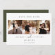 Minimalistisk Oliv grönt, bröllop 3-fotot sparar datumkortet. Svart typografi med oliv grönt uppbackning av färg.