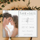 Meddela din bröllopsdag med det här minimalistiska fotot Spara datum meddelande. Spara datumsymbolen med en lämnat sidofotoplacering för lycklig-paret med enkel och modern typografi. Lägg till foton och information om bröllop som du vill anpassa.