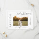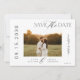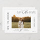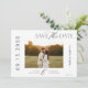 Eleganten har minimal utformning av ett enkelt anpassningsbar-fotokort för svartvita skript, bröllop spara datum-.