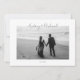 Minimalistisk inbjudan till fotoutbyggnad och bröllop. Anpassa med brid och groom namn i skriptbokstäver för elegant, ditt favoritfoto för bröllop och ditt bröllop-datum på framsidan, och lägg till ditt e-postmeddelande och information om inbjudan för bröllopsfest på baksidan.