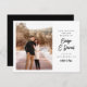 Sprid nyheterna om bröllop med det här minimalistkortet. Den innehåller en snyggt, handskriven text och ett favoritfoto.