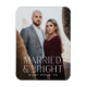 Firar din första jul som ett gift par med vår enkla Married and Bright helgdag-fotomagnet! Magnet har "Married & Bright" som visas i modern, vit text som täcker ditt foto av lodrät bröllop. Anpassa magnet med ditt namn och året.