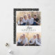 Minimalistiskt fotokort för Helgdag. Svart typografi, 3 fotokollage med koordinering av festive grey mönster.