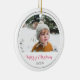 Den här enkla, minimalistiska julprydnaden har ditt favoritfoto tillsammans med ord "God jul" i modern, trendig-manustypografi, här på rödaktig rosa (färg kan ändras). Du kan ändra texten och även hela färg om du vill. Det ser bra ut. God jul! ©Susanne Sacher - Sunny Mind Design 🌞