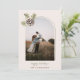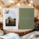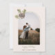 Minimalistiskt Gräs Cone & Löv Dubbla Arch Photo Helgdag Card med bakgrundsmeddelande på gröntens bakgrund.